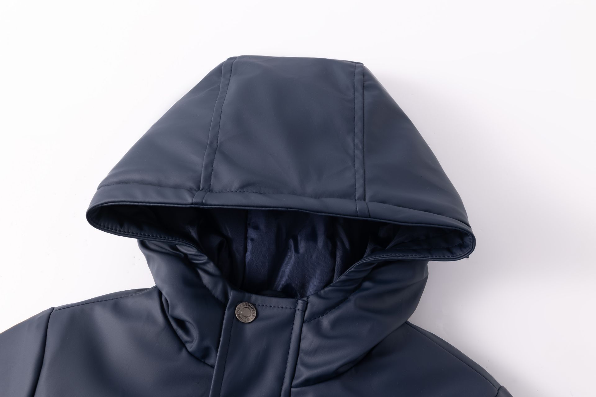 Chubasquero con capucha y manga larga acabado en puño interior. Cierre cremallera frontal. Bolsillos delanteros con detalle vivo. Forro tejido borreguito. Tejido especial repelente al agua.