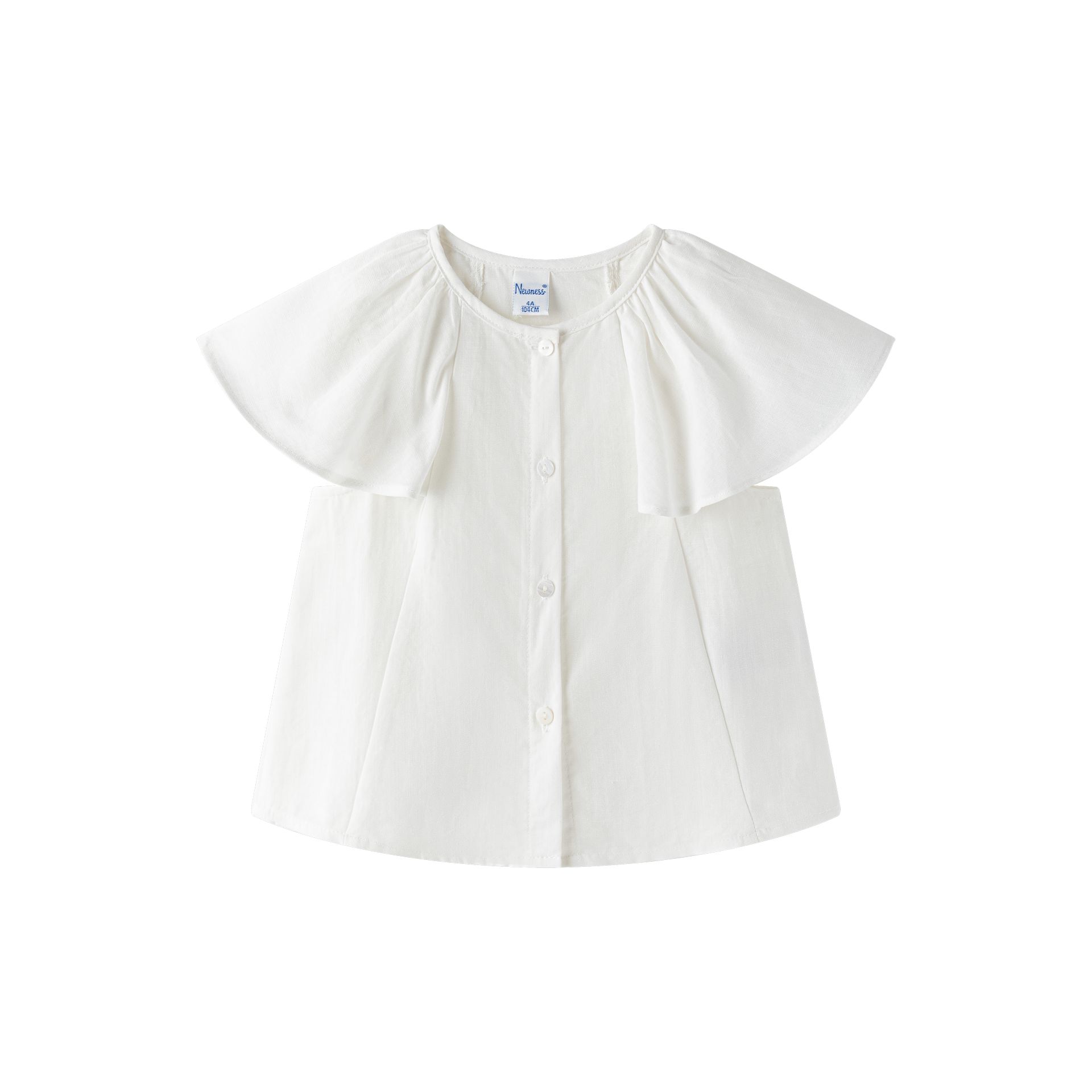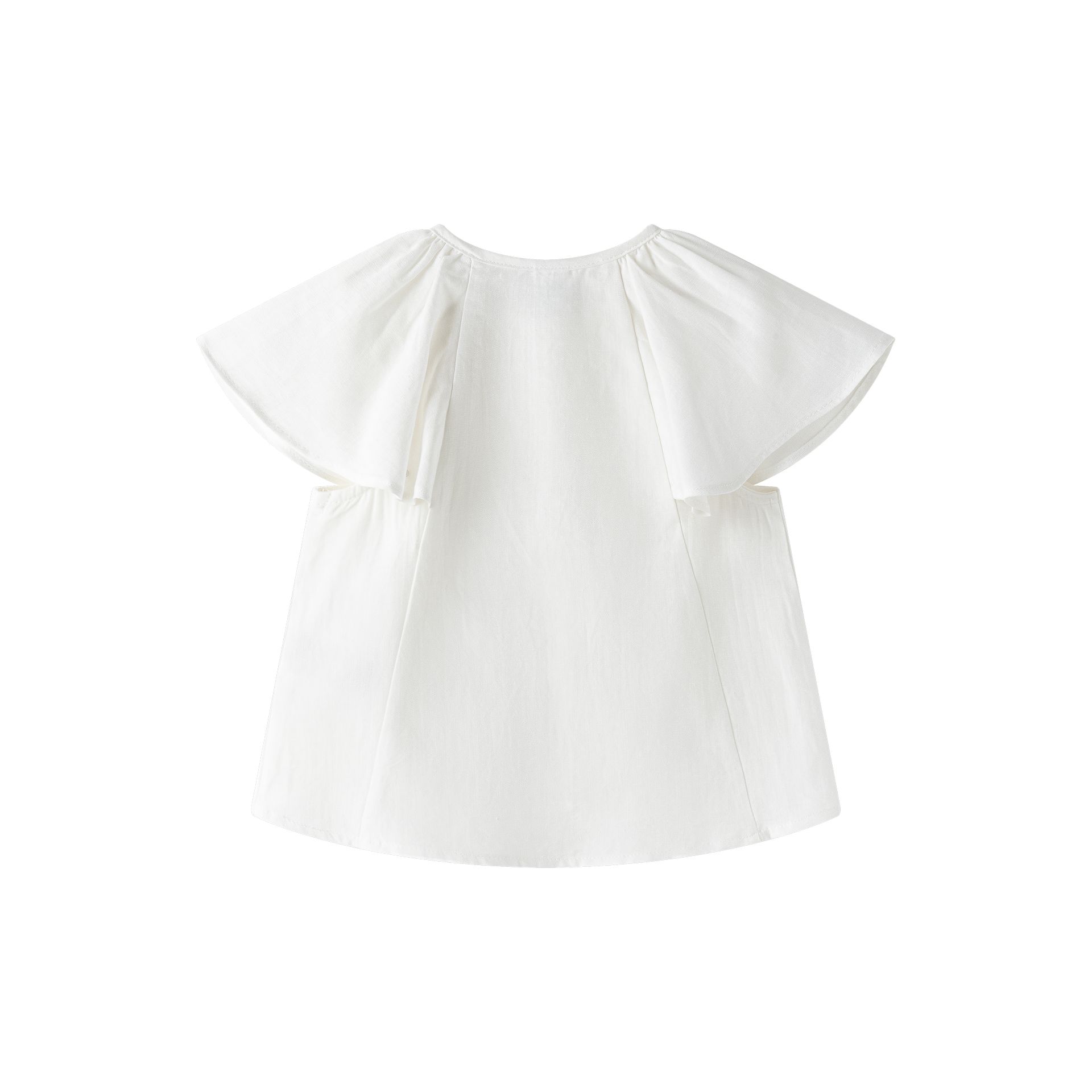 Camisa de lino blanco tratado, para niña 3-9A con volante en mangas, ideal vestir.