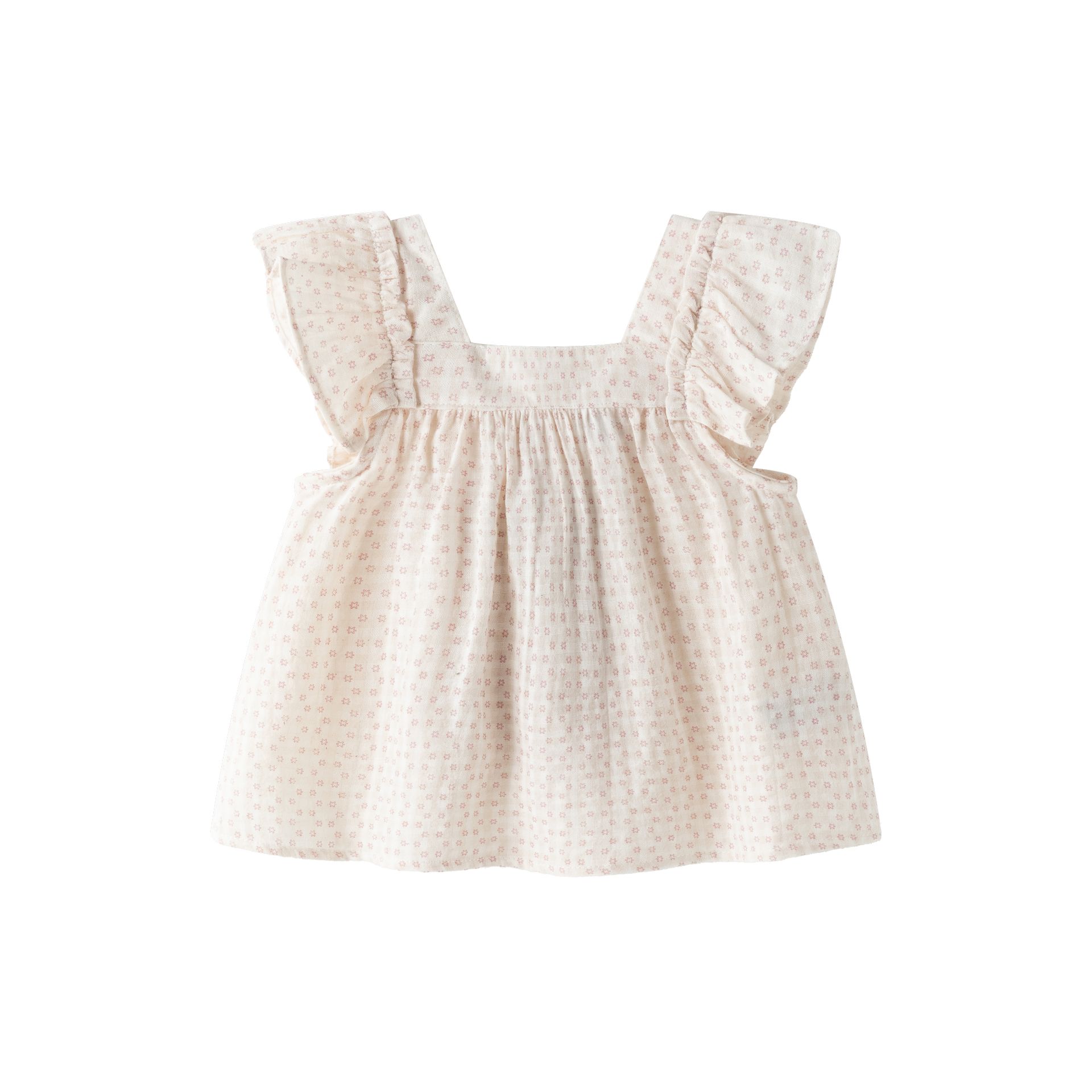 Camisa de Niña 3-9A fondo beige y pequeño dibujo en color rosa con lazada en espalda a juego.