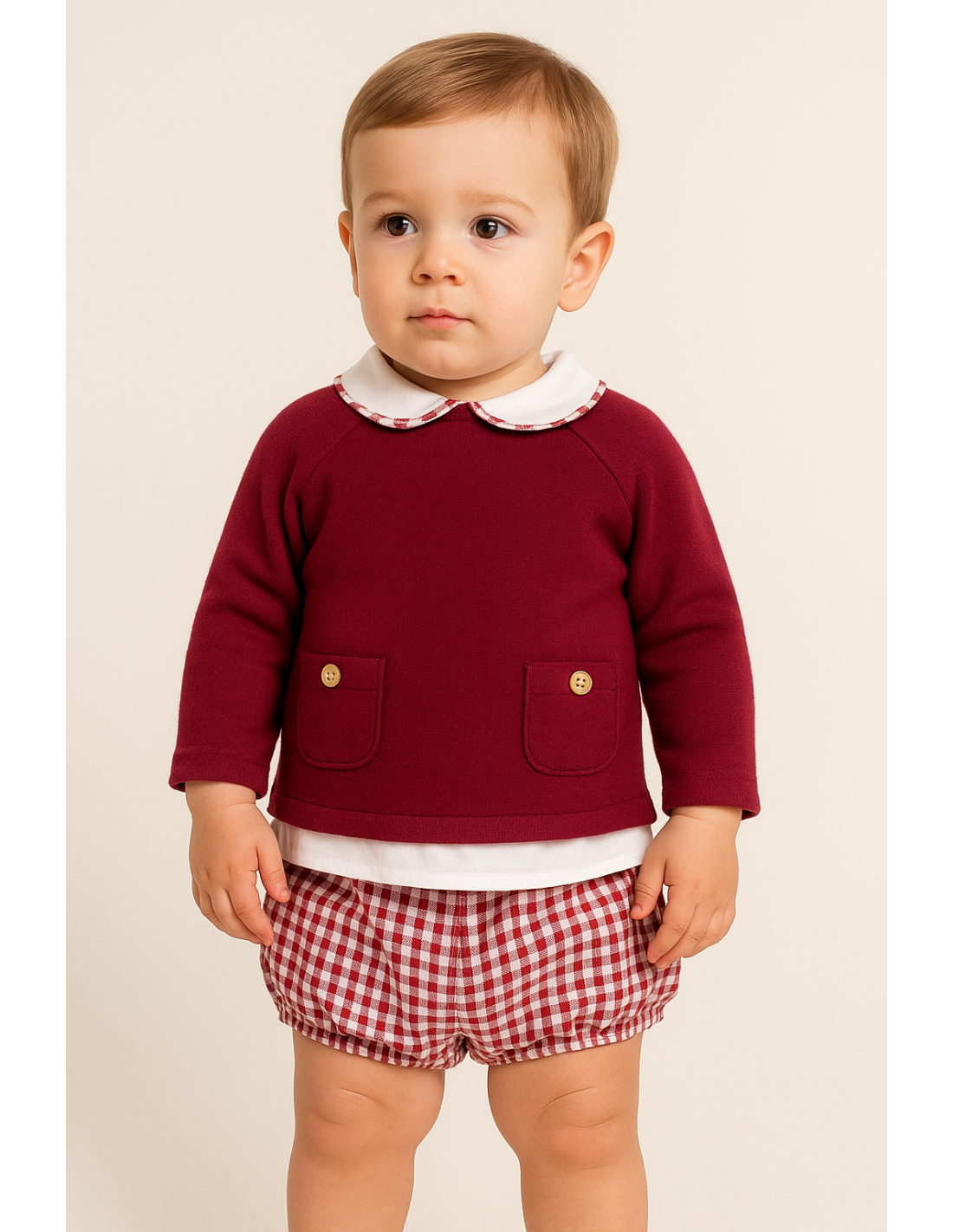 Conjunto bebé sudadera y polo. Sudadera con cuello bebé y polo en cuadro vichy.