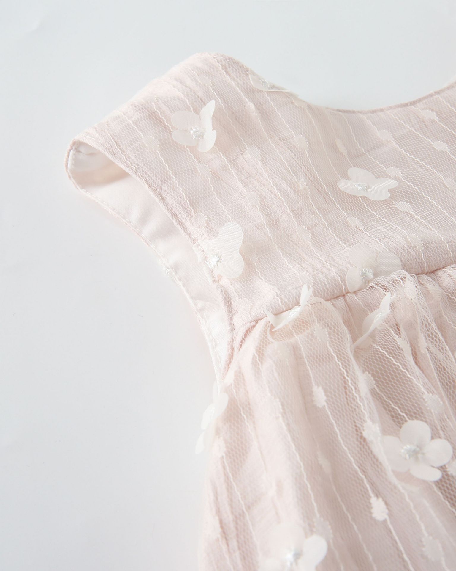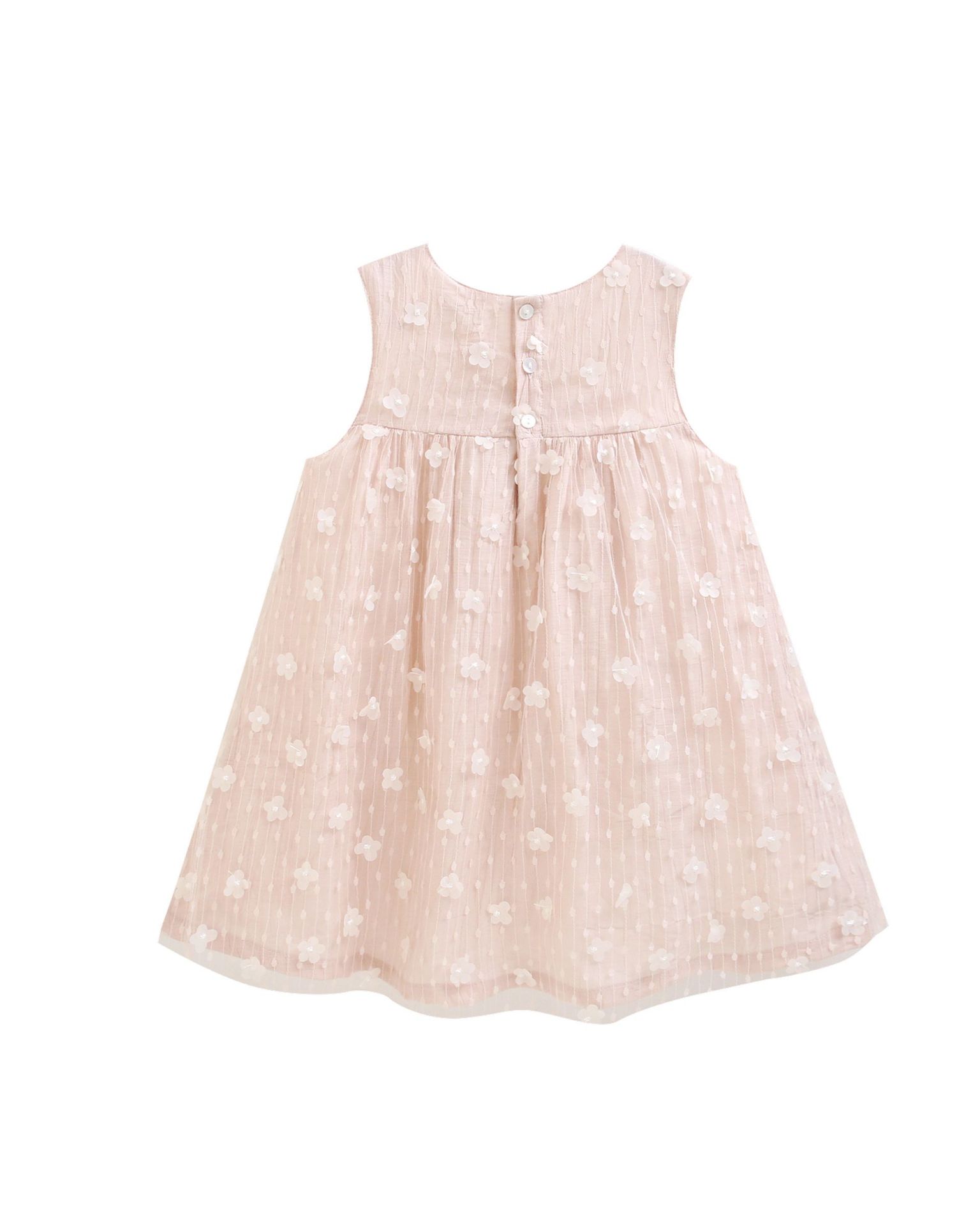 + Gastos de envioVestido de ceremonia para Niña 3-9A con tejido tipo seda y doble tull en rosa empolvado, con delicadas flores a juego .