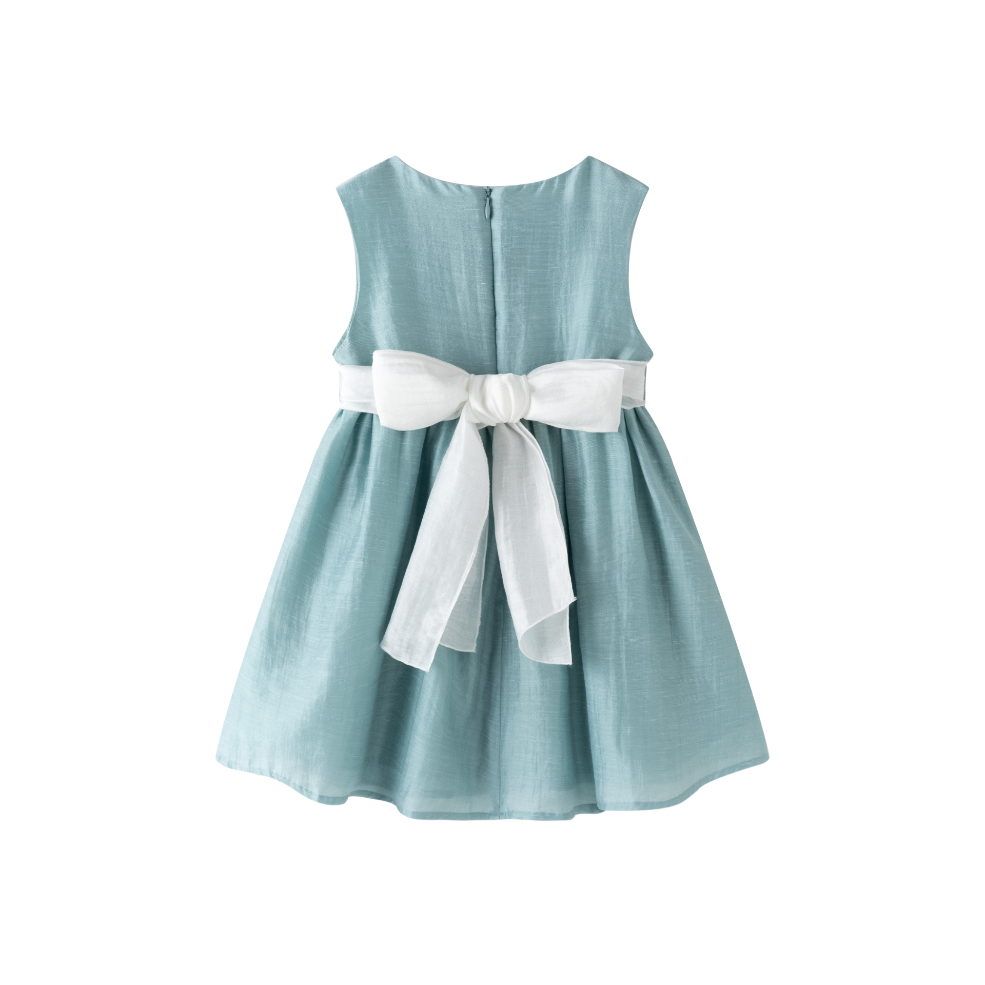 + Gastos de envioVestido de ceremonia para Niña 3-9A en tejido tipo seda tratada, con mangas de volante atado en espalda