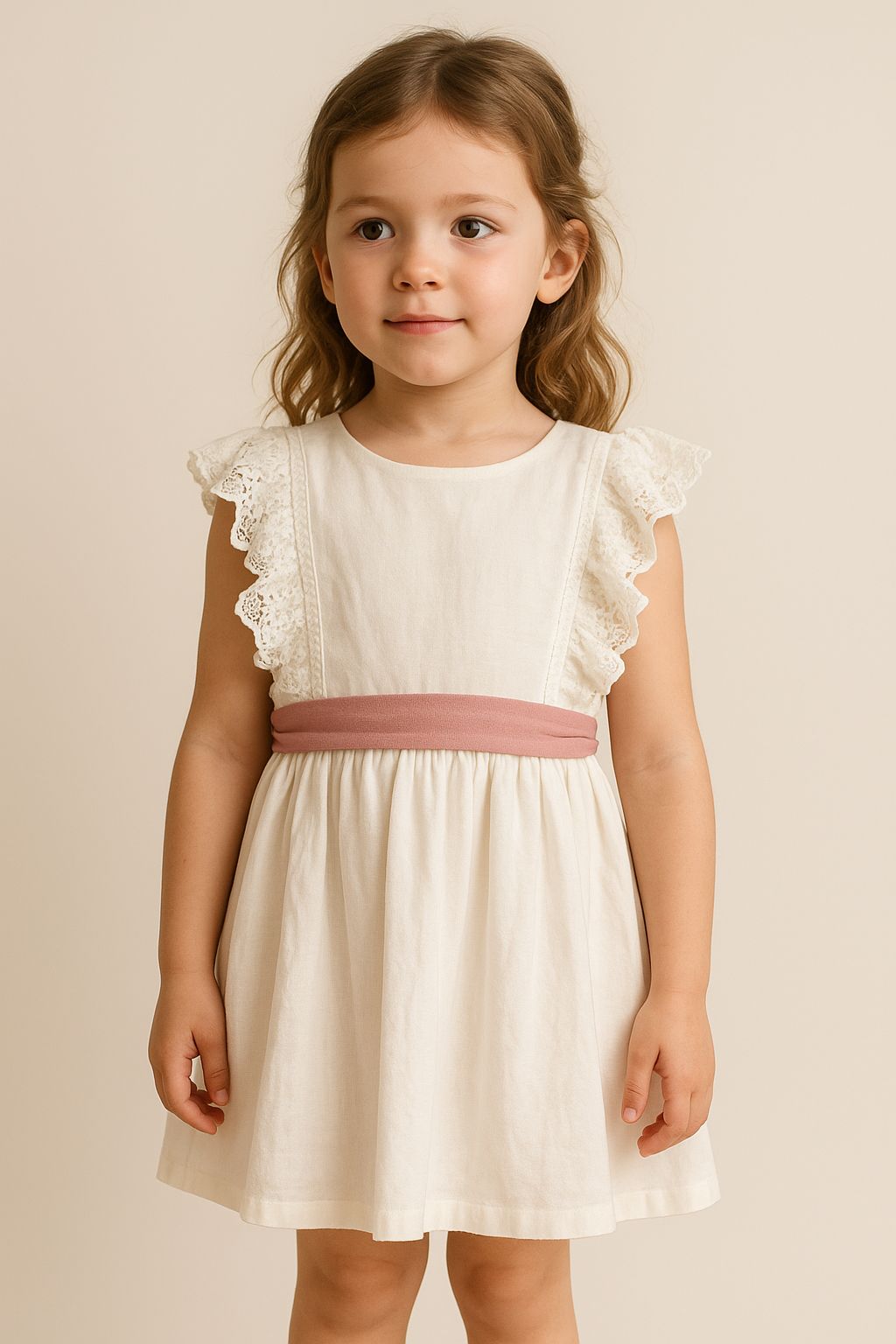 Vestido de fiesta de niña. Detalle de lazo en la cintura.