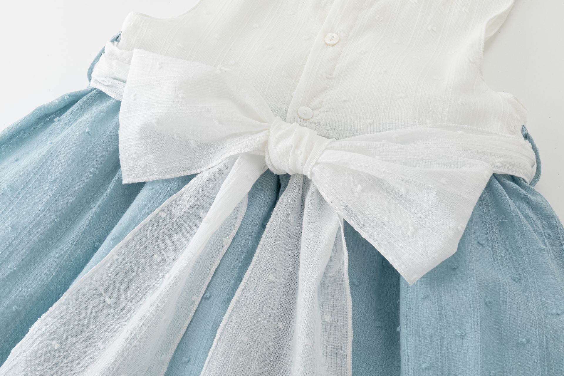 + Gastos de envioVestido de vestir para niña, tejido de plumeti y fajin en blanco a juego con la lazada en la espalda.